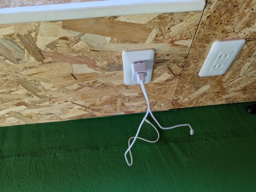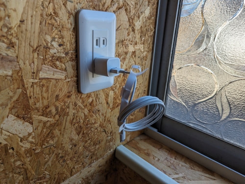 2023.08.16 スマホの充電 大事です。 ベンチのコンセントから充電器とケーブルを設置しました。 設置という大げさなものではありませんが忘れてました。 大事です。 電気代は無料です(笑) ご利用ください。 3か所