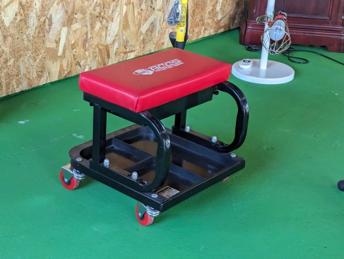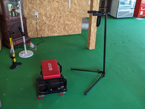 座りながらメンテナンスできるイスも用意しました。地面に座らなくてもよいので便利です。